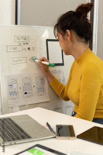 The watermark will not be included on Wall mural.: Creative web designer planning ui application and developing digital template