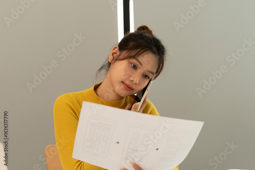 The watermark will not be included on Wall mural.: Creative web designer planning ui application and developing digital template