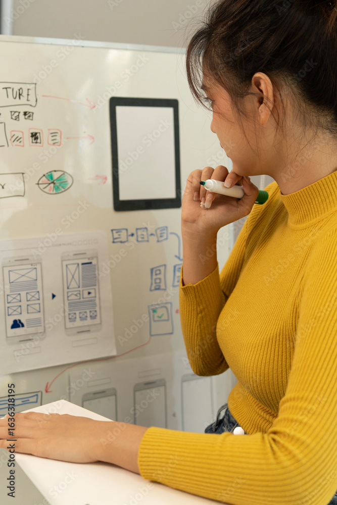 The watermark will not be included on Wall mural.: Creative web designer planning ui application and developing digital template