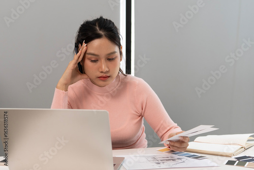 The watermark will not be included on Wall mural.: Creative web designer planning ui application and developing digital template