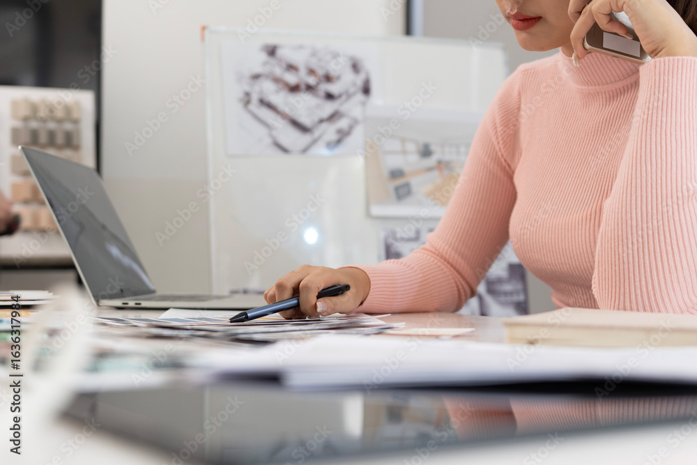 The watermark will not be included on Wall mural.: Creative web designer planning ui application and developing digital template