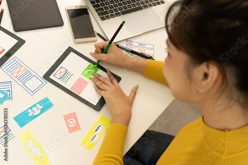 The watermark will not be included on Wall mural.: Creative web designer planning ui application and developing digital template