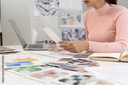 Wall mural : Creative web designer planning ui application and developing digital template