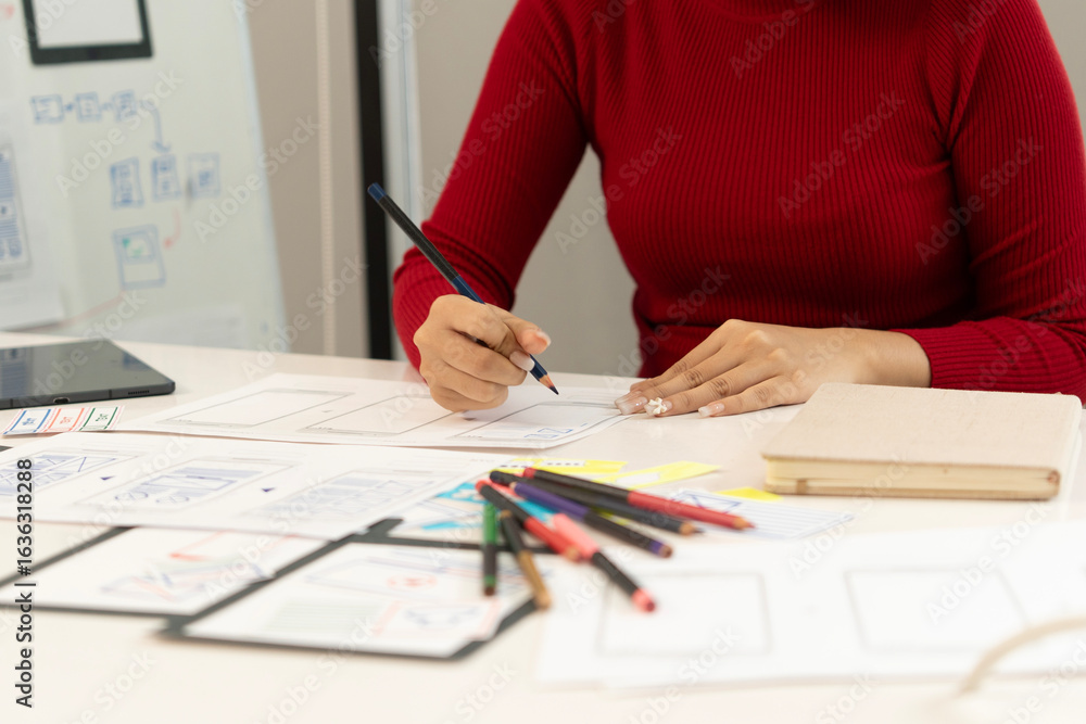 The watermark will not be included on Wall mural.: Creative web designer planning ui application and developing digital template