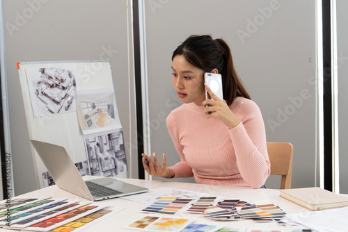 The watermark will not be included on Wall mural.: Creative web designer planning ui application and developing digital template
