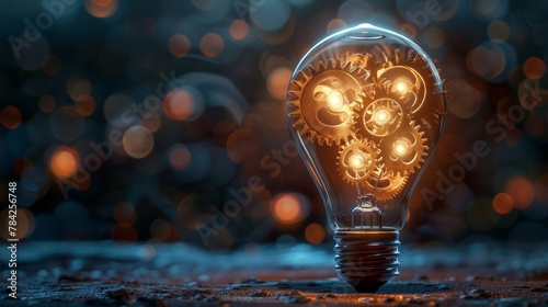 Wall mural : Creativity and Design: A 3D vector illustration of a lightbulb with gears and cogs inside