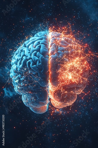 Wall mural creativity and logic symbolized by a luminous network within a split human brain. - Wall murals Wall mural creativity and logic symbolized by a luminous network within a split human brain. - Wall murals