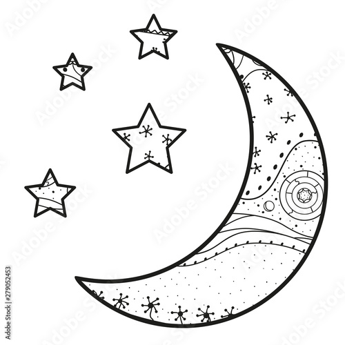 Wall mural crescent moon and stars with abstract patterns on isolation background. design for spiritual relaxat