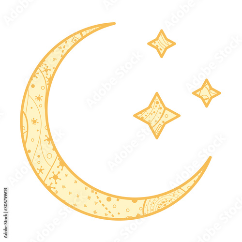 Wall mural crescent moon and stars with abstract patterns on isolation background. design for spiritual relaxat