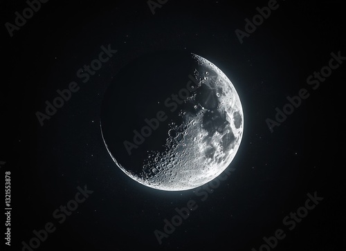 The watermark will not be included on Wall mural.: Crescent moon illuminated in deep space night sky