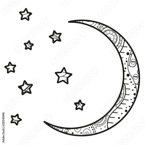 Crescent moon with stars with abstract patterns on isolation background - design for spiritual relaxaWall mural
