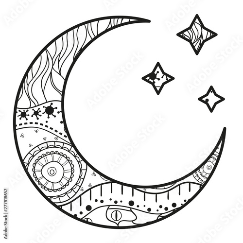 Crescent moon with stars with abstract patterns on isolation background - design for spiritual relaxaWall mural
