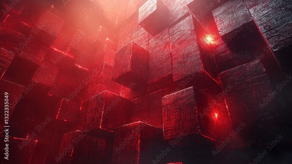 The watermark will not be included on Wall mural.: Crimson cube labyrinth: a digital abstract of interlocking red blocks