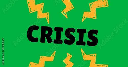 Wall mural : Crisis text banner with multiple thunderbolt icons with copy space on transparent background