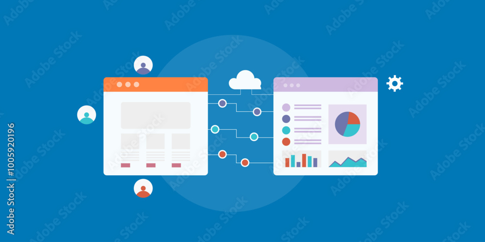 Wall mural : Crm software integration with website, customer insights and data flow optimization, cloud network c