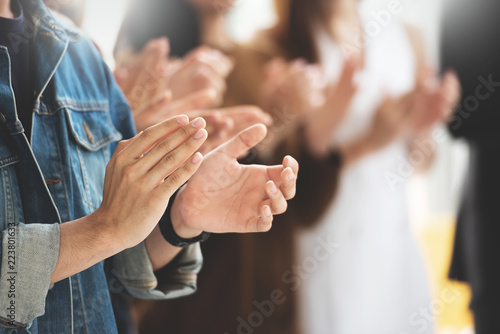 Wall mural : Cropped image of creative designers audience applauding at a business seminar -