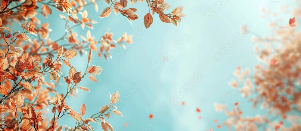 Crown of a tree featuring the initial autumn leaves background with selective focus and copyspace foWall mural