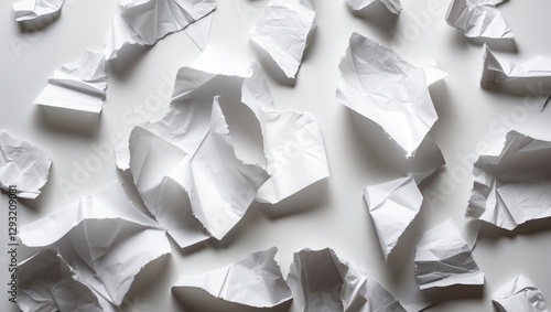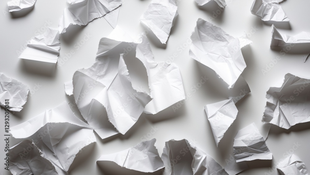 The watermark will not be included on Wall mural.: Crumpled white paper pieces scattered on a bright background creating a texture for creative design