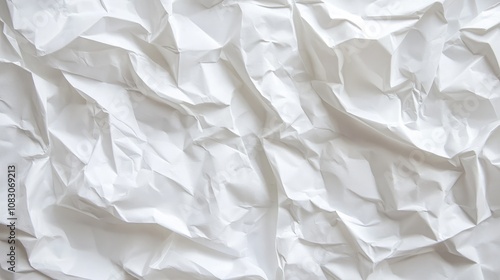 Wall mural : Crumpled white paper texture background featuring abstract shapes providing ample space for text