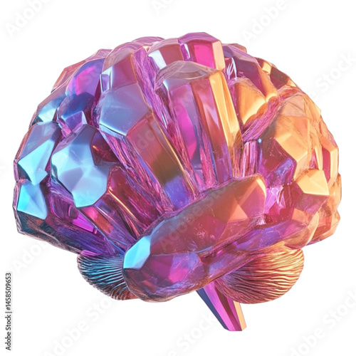 The watermark will not be included on Wall mural.: Crystal brain iridescent colorful abstract art neural network