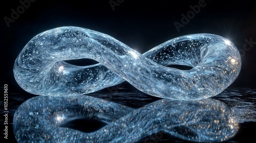 Crystal clear infinity loop with reflective surface and dark backgroundWall mural