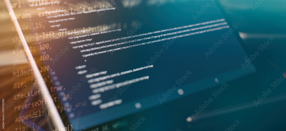 Wall mural css, javascript and html usage. monitor closeup of function source code. abstract it technology back - Wall murals Wall mural css, javascript and html usage. monitor closeup of function source code. abstract it technology back - Wall murals