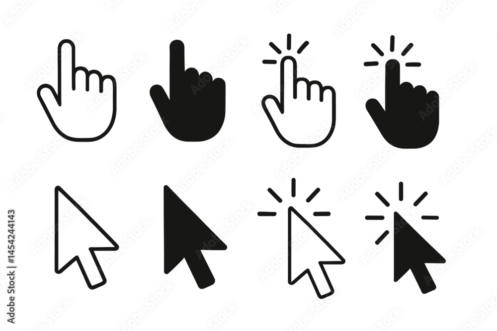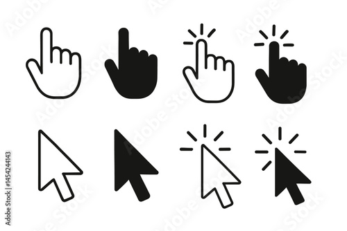 The watermark will not be included on Wall mural.: Cursor and hand click icon set in black and white
