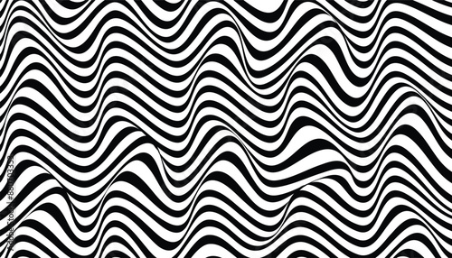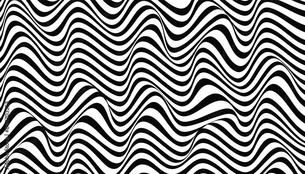 The watermark will not be included on Wall mural.: Curve wave stripe line pattern - optical illusion wavy background with black and white stripes textur
