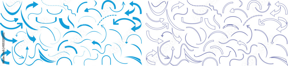 The watermark will not be included on Wall mural.: Curved arrows and lines vector illustration, arrow and line in artistic decorative shapes, dynamic f