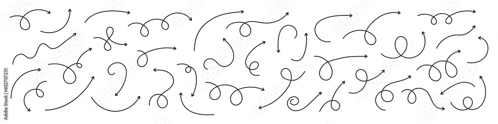 Wall mural curved arrows. set of vector hand drawn arrows. collection of pointers.