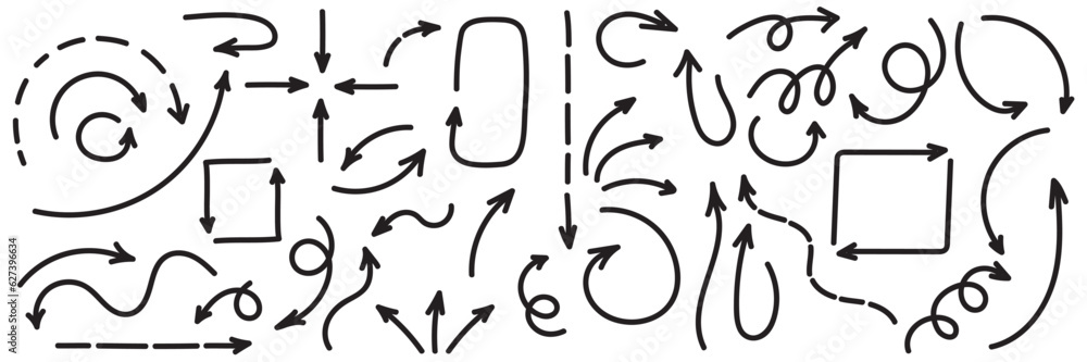 Wall mural curved arrows. set of vector hand drawn arrows. collection of pointers.