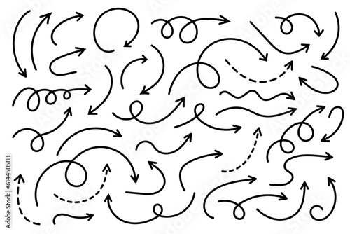 The watermark will not be included on Wall mural.: Curved arrows - set of vector hand drawn arrows - collection of pointers -
