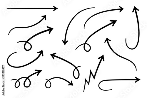 Wall mural curved arrows. set of vector hand drawn arrows. collection of pointers.