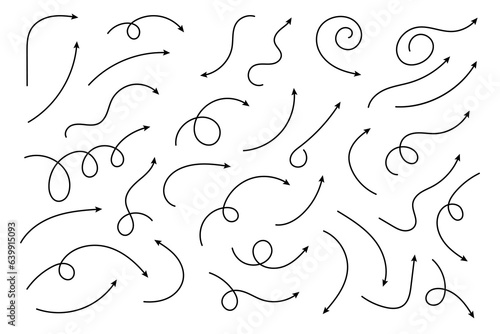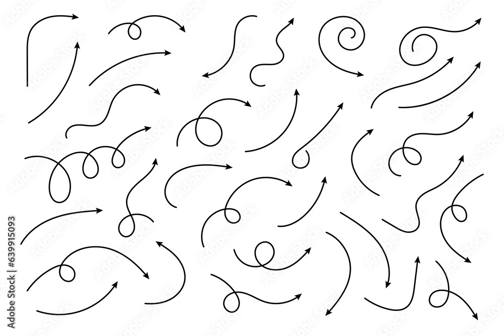 The watermark will not be included on Wall mural.: Curved arrows - set of vector hand drawn zigzag arrows - collection of pointers - vector illustration -
