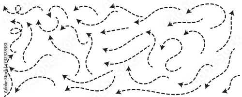 Wall mural curved dotted arrow. zigzag arrow stripes design with dotted lines. pointers to the wire, up, down.
