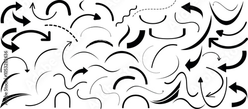 The watermark will not be included on Wall mural.: Curved lines and arrow vector set, hand drawn curve line shapes in diverse styles for creative desig