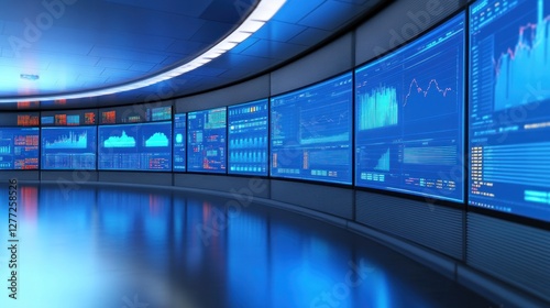 Wall mural curved screens display data in control center - Wall murals Wall mural curved screens display data in control center - Wall murals
