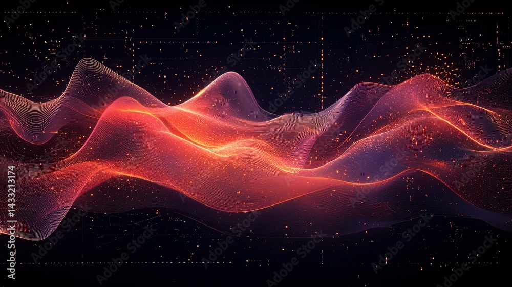 The watermark will not be included on Wall mural.: Curving visual loop animating over a digital interface background