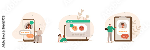 Customer feedback and user experience illustration set - characters giving review to customer serviceWall mural