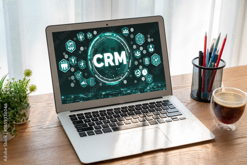 Wall mural customer relationship management system on modish computer for crm business and enterprise - Wall murals Wall mural customer relationship management system on modish computer for crm business and enterprise - Wall murals