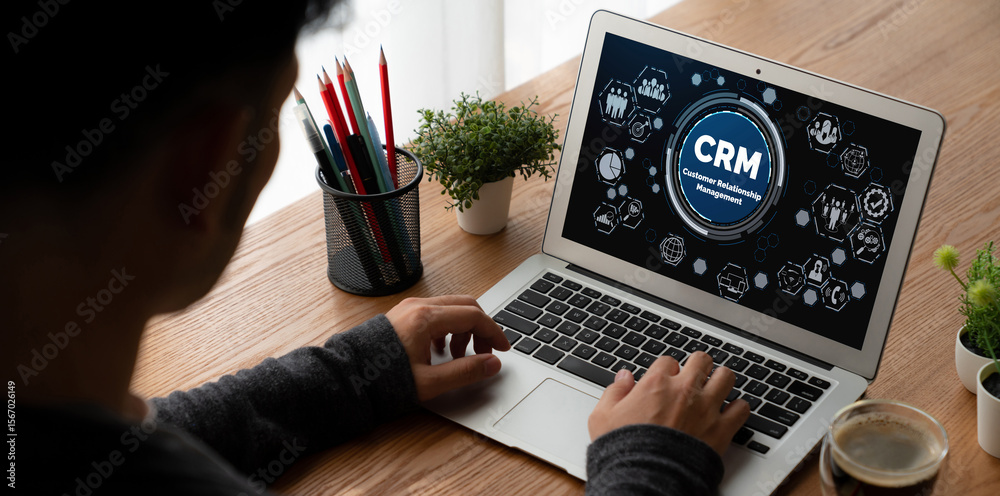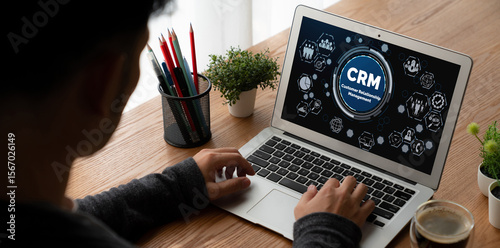 Wall mural : Customer relationship management system on modish computer for crm business and enterprise