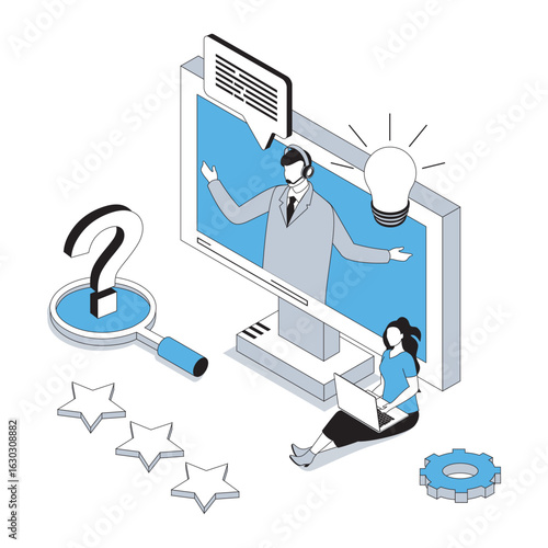 The watermark will not be included on Wall mural.: Customer support 3d isometric concept with isometry people design for web - operator in headset consu