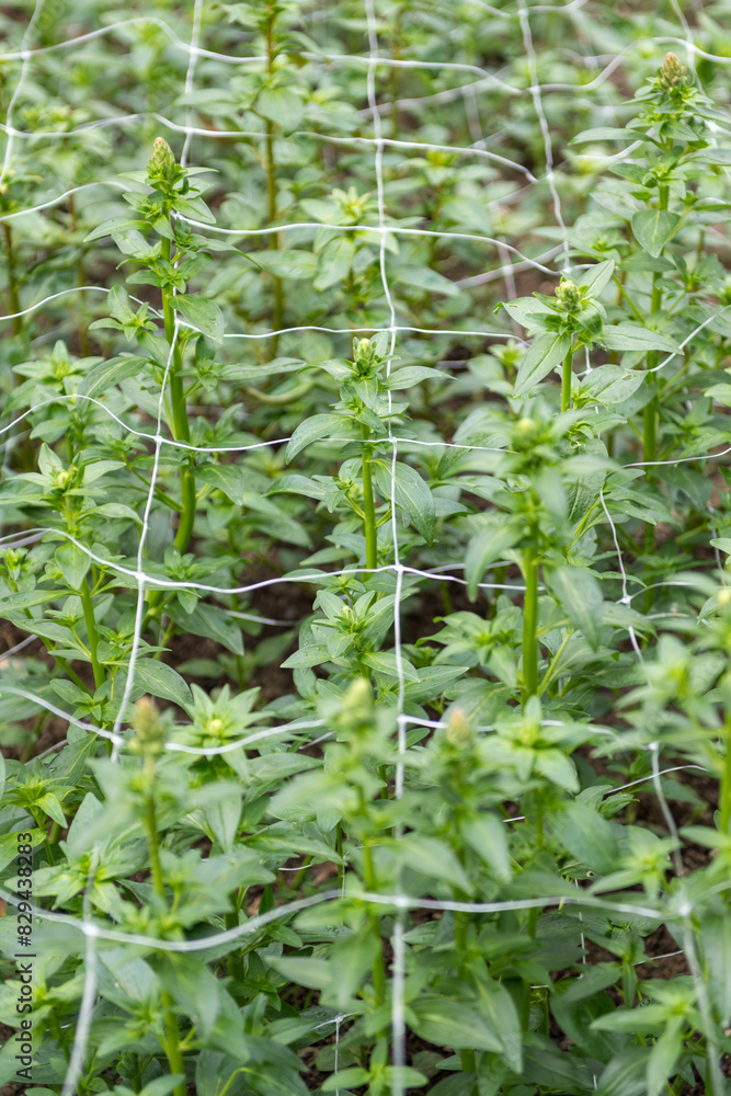 The watermark will not be included on Wall mural.: Cut flower netting - plant support net - using plastic garden netting to support snapdragon plants -