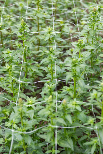 Wall mural cut flower netting. plant support net. using plastic garden netting to support snapdragon plants.