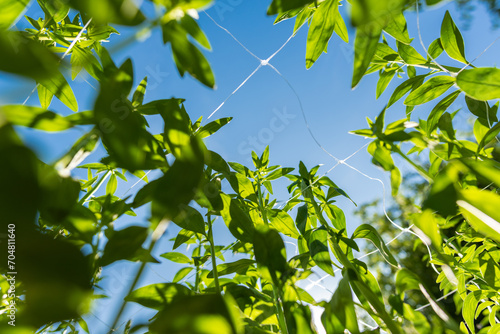Wall mural cut flower netting. plant support net. using plastic garden netting to support snapdragon plants. ta