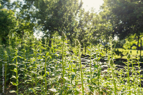 Cut flower netting - plant support net - using plastic garden netting to support snapdragon plants - taWall mural