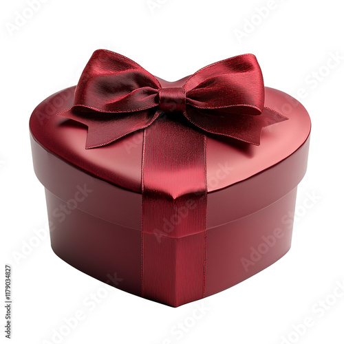The watermark will not be included on Wall mural.: Cut out red heart shape gift box with red ribbon isolated on empty transparent background top view -
