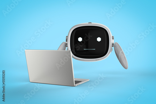 Wall mural : Cute assistant artificial intelligence robot no leg with computer notebook