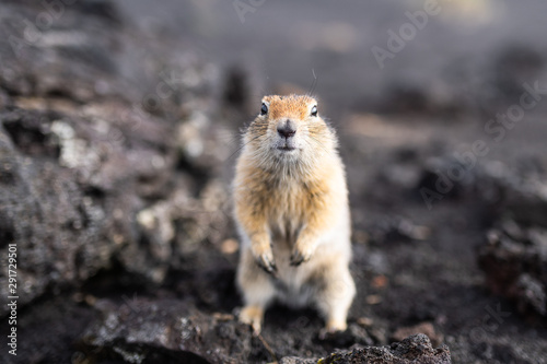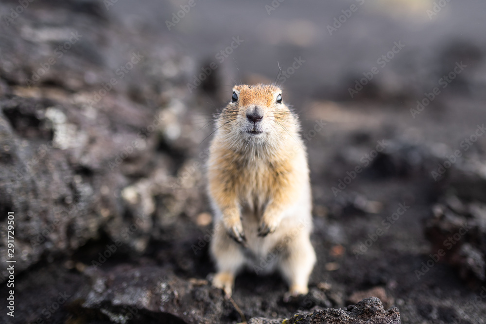 The watermark will not be included on Wall mural.: Cute funny gophers are looking into the camera