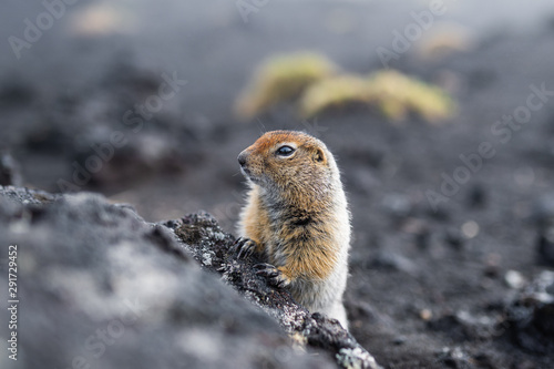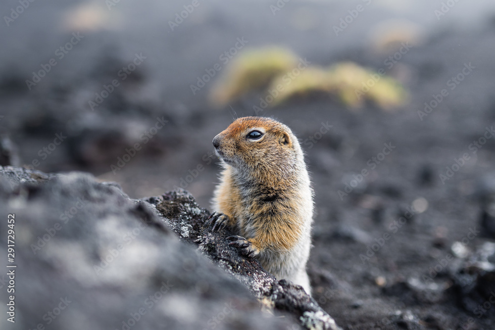 The watermark will not be included on Wall mural.: Cute funny gophers are looking into the camera